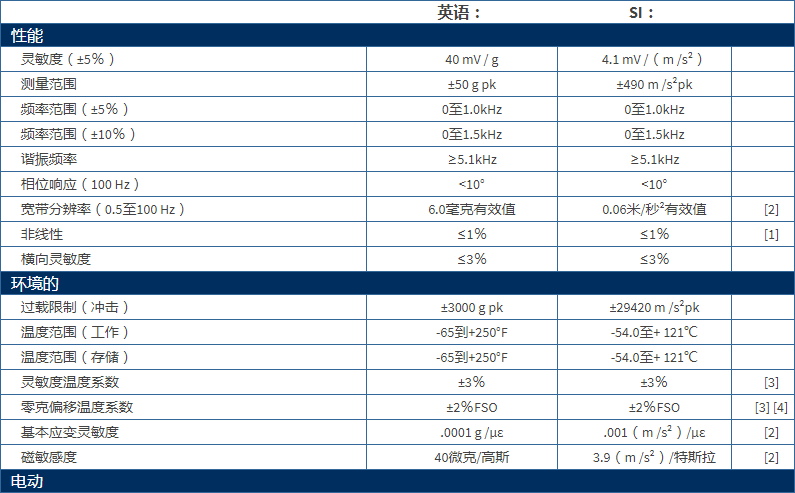 MEMS直流加速度計(jì),40 mV / g,+/- 50 g范圍,0至1000 Hz,4針連接器靈敏度:(±5%)40 mV / g(4.1 mV /(m /s2))測(cè)量范圍:±50 g pk(±490 m /s2pk)寬帶分辨率:6.0 mg rms(0.06 m /s2rms)溫度范圍:-65至+250°F(-54.0至+121°C)頻率范圍:(±5%)0至1.0 kHz