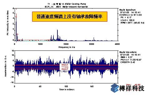 電機(jī)頻率為2950r/min(49.13hz),電機(jī)端軸承型號(hào)為skf6313,定冷泵端軸承型號(hào)為skf6307。采用加速度傳感器分別測(cè)量?jī)蓚€(gè)軸承的軸承座外殼水平、垂直和軸向方向的振動(dòng)量。測(cè)點(diǎn)位置如圖5所示。在進(jìn)行普通的波形頻譜分析的同時(shí),還利用了csi的***技術(shù)peakvuetm 對(duì)軸承進(jìn)行狀態(tài)監(jiān)測(cè)。
