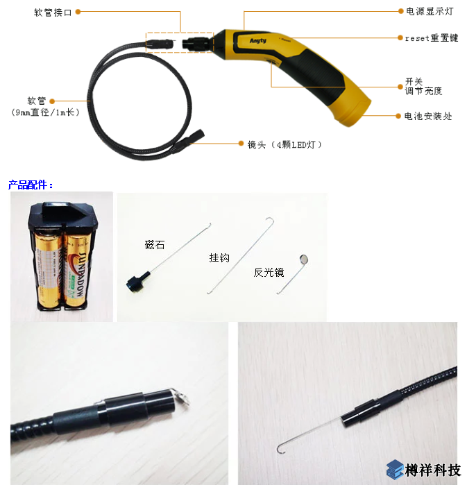 反光鏡:在內(nèi)窺鏡看不到的地方(如側面),可用專用反光鏡顯示物體周邊情況。