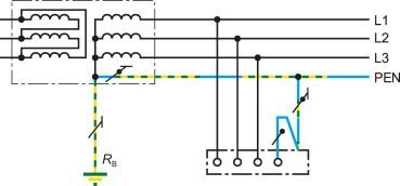 在TN系統(tǒng)中,一點直接接地并且電氣裝置的裸露導電部分通過保護接地線連接到這一點。