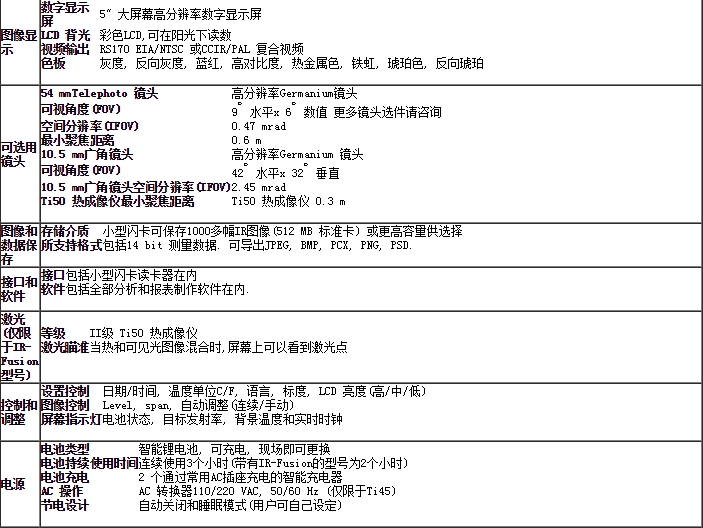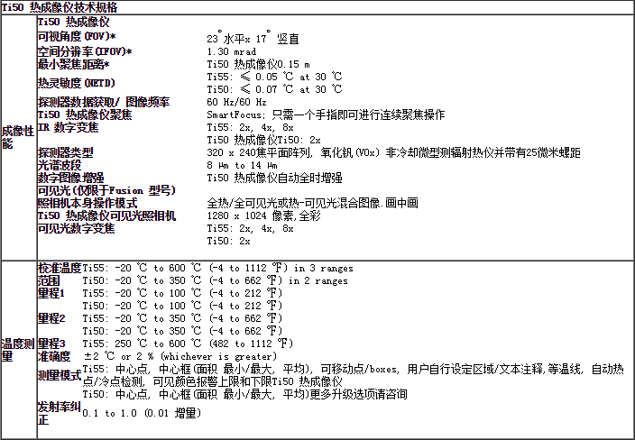 Ti50 熱成像儀產品采用新的IR-Fusion™技術, IR-Fusion可捕獲可見光圖像和紅外圖像,讓IR圖像分析變得不再神秘.它可以幫助更好的識別和報告可疑組件,可在***時間完成完成維修工作.詳情請查看位于本頁內容導航部分的IR-Fusion選項.