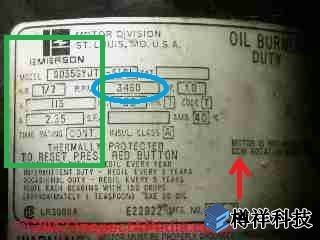 藍色橢圓形標記電機的轉速 - 3450 RPM - 這是一個***速油燃燒器。 舊油燃燒器和設備電機以1725RPM運行。 一些HVAC設備使用變速電動機。