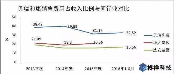 此外,貝瑞和康的業(yè)務(wù)收入很大程度上依賴于其銷售能力。數(shù)據(jù)顯示,相比華大基因20%左右的銷售費(fèi)用比例(銷售費(fèi)用占總收入的占比),貝瑞和康的銷售費(fèi)用比例可以***達(dá)32%,更是比達(dá)安基因(25.980, 0.02, 0.08%)16%左右的銷售比例***出一倍。