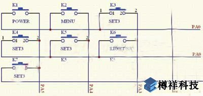 由于ST20P18的I/O口有限,故在鍵盤電路中采用掃描的方式來實(shí)現(xiàn)。該電路的實(shí)現(xiàn)方式如圖2所示。其工作的基本原理是:單片機(jī)初始化后先設(shè)置 PA0至PA5、6個I/O口均為輸入方式。
