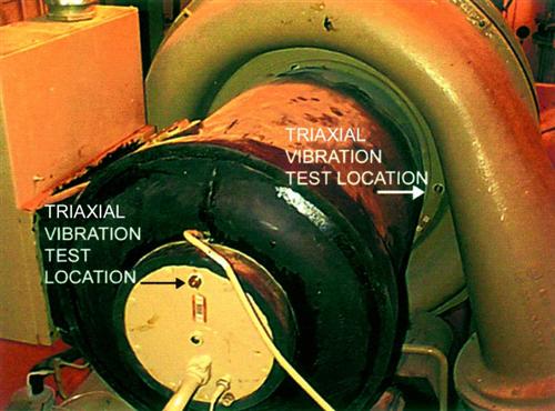 圖1.冷卻器顯示電機(jī)軸承座上的振動(dòng)測(cè)試位置。