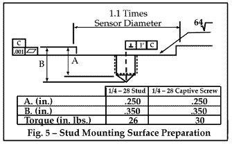 有四種主要方法用于將傳感器連接到預測性維護中的監(jiān)控位置。它們采用螺柱安裝,粘合劑安裝,磁力安裝以及探針尖端或刺針的使用。每種方法都會影響加速度計的***頻響應。螺柱安裝提供***寬的頻率響應和***安全可靠的附件。圖5顯示了螺柱安裝傳感器的理想表面準備。